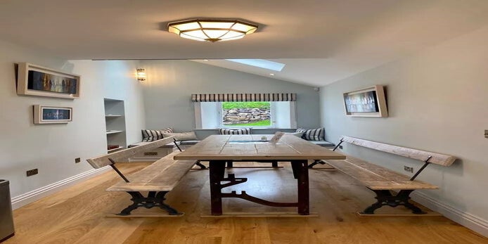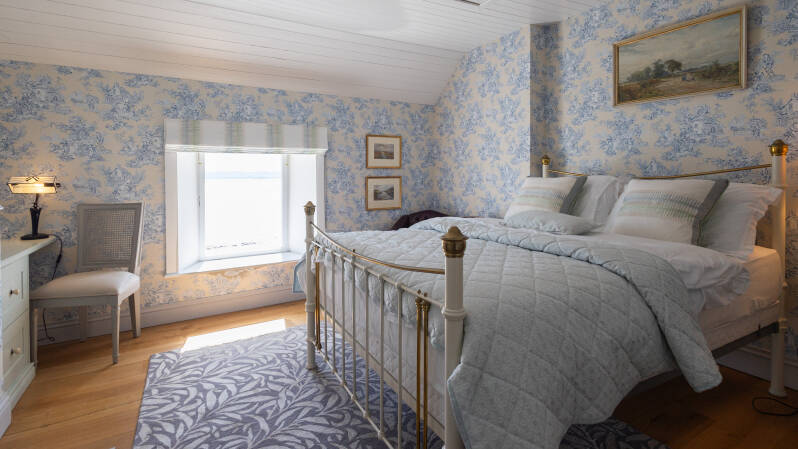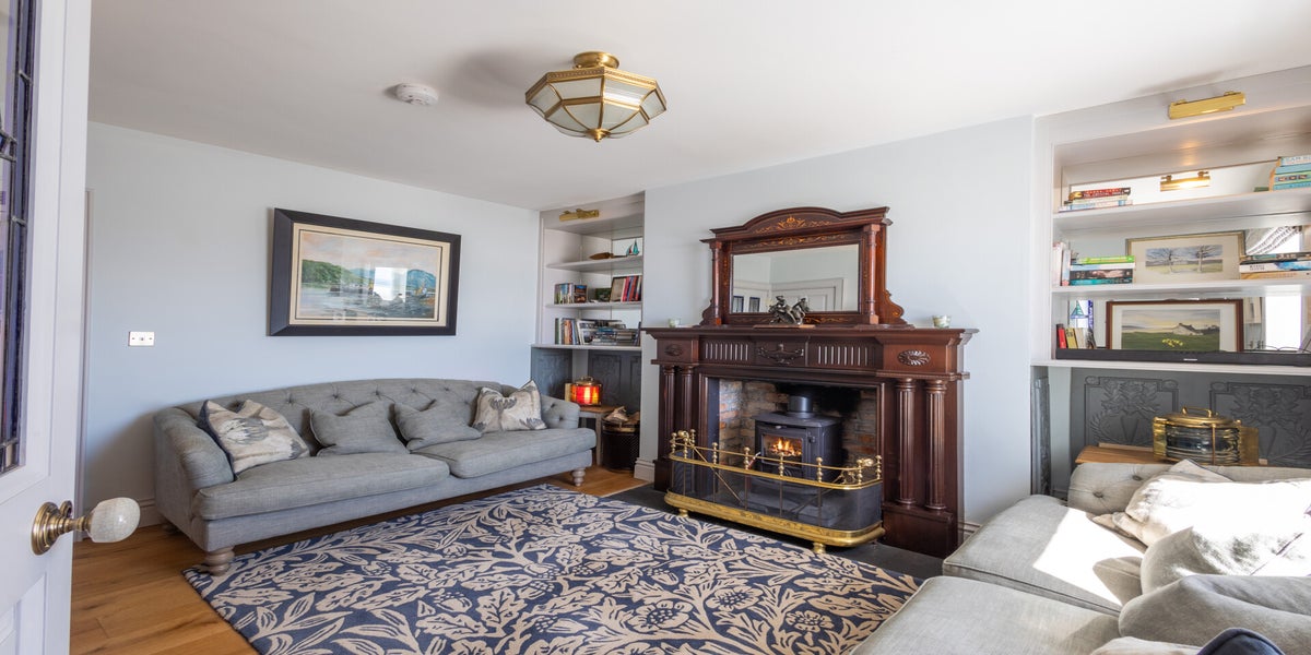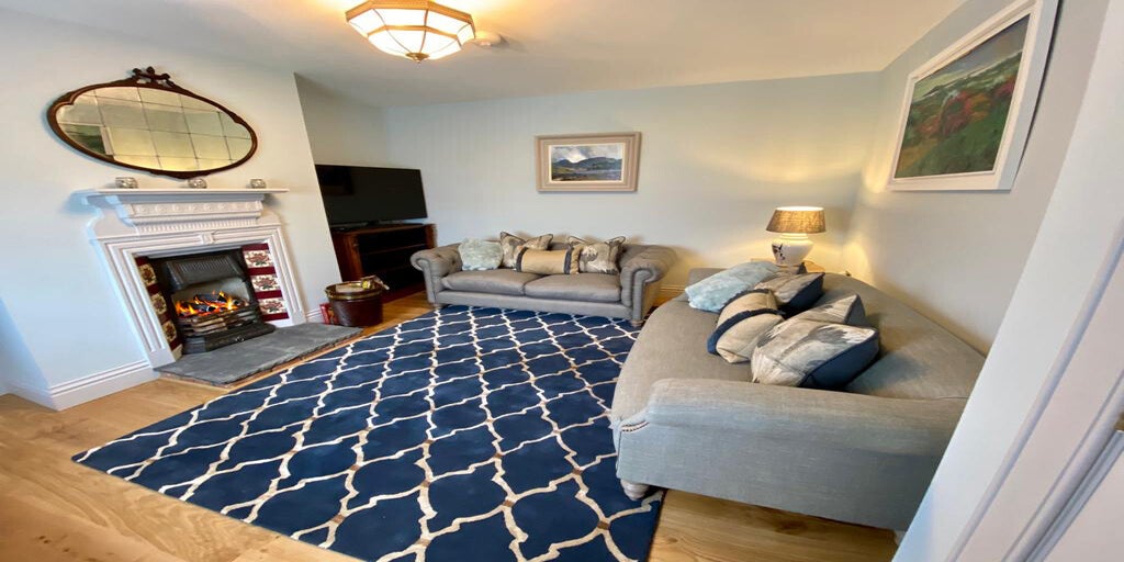 The Living Room fronts the Atlantic, and boasts an ornate mahogany fireplace for cosy evenings reading by the fire. The adjoining Study, with its fine Victorian fireplace, as well as LG 55 in Smart TV,. Also Sofa Bed which can be converted to extra accommodation.